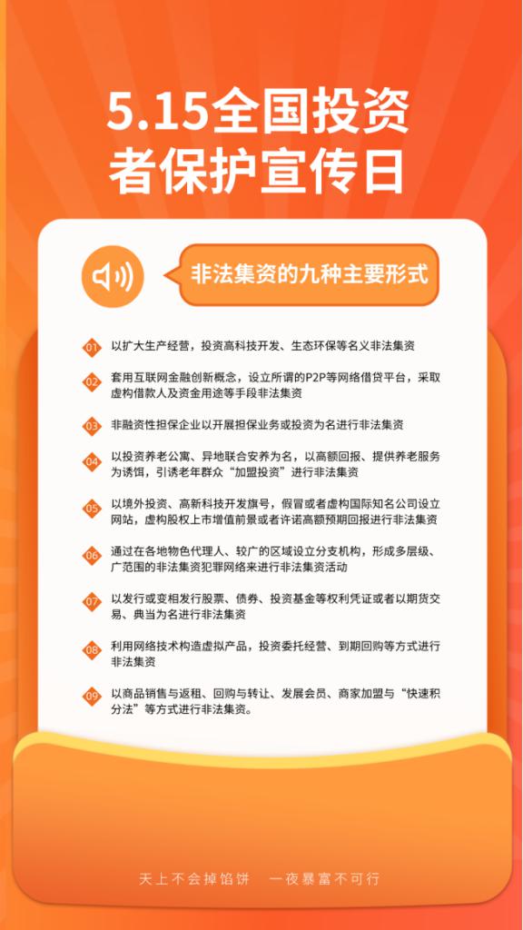 為了更好地保護投資者的權(quán)益,讓投資者更加理性、科學(xué)地進行投資,加強投資市場的規(guī)范和透明度。中國證監(jiān)會將每年5月15日定為“全國投資者保護宣傳日”,以進一步倡導(dǎo)理性投資文化,凝聚市場各方共識,形成人人關(guān)心、關(guān)愛、關(guān)注中小投資者合法權(quán)益的良好氛圍,讓投資者保護理念深入人心。